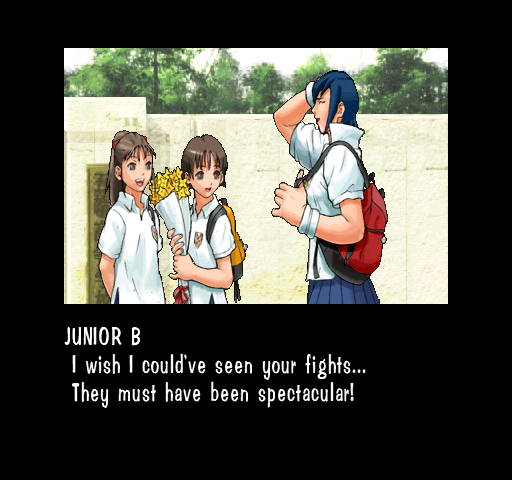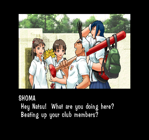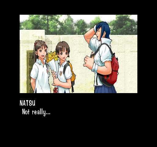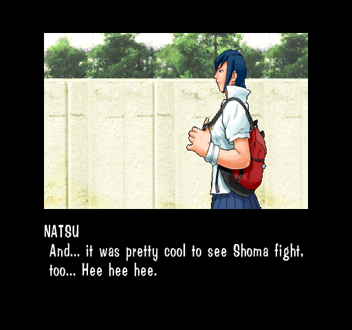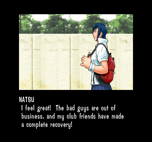 | Bad Ending | - Good Ending - | | Batsu | Hinata | Kyosuke | Akira | Pure Rider Akira | Gan | - Natsu - | Edge | Roy | | Sakura | Boman | Roberto | Kyoko | Tiffany | Hideo | Syoma | Raizo | Hyo | |