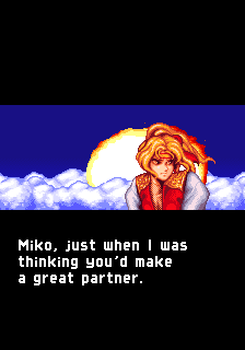 | Jane, Kenno Team | Jane, Gen Team | Jane, Tengai Team | Tengai, Gen Team | Tengai, Kenno Team | Tengai, Miko Team | | Gen, Flush Team | Gen, Kenno Team | Kenno, Flush Team | Flush, Jane Team | Flush, Tengai Team | | Miko, Kenno Team | - Miko, Jane Team - | Miko, Flush Team | Miko, Gen Team | | Solo Play | - Team Play - | | - 1st Run - | 2nd Run | | - Good Ending - | Bad Ending | |