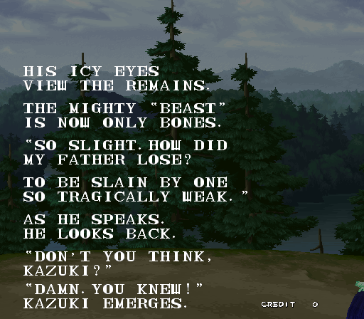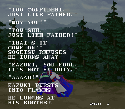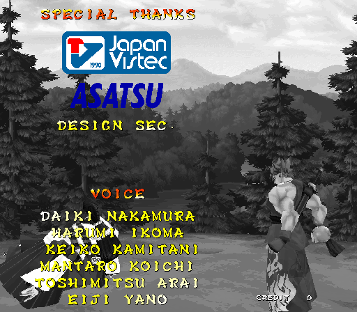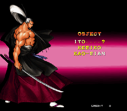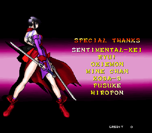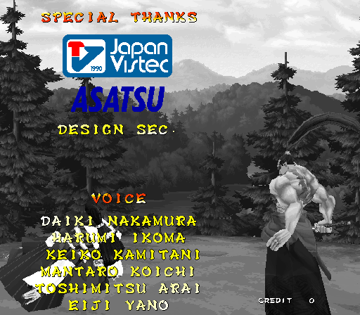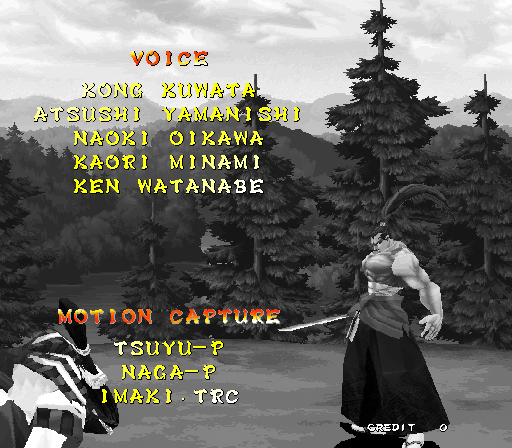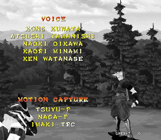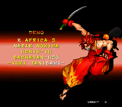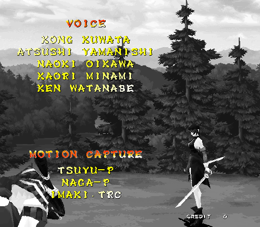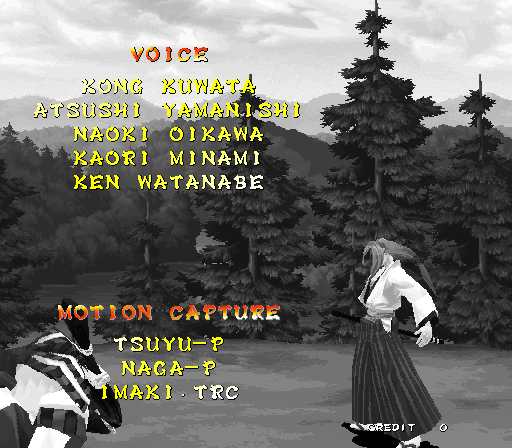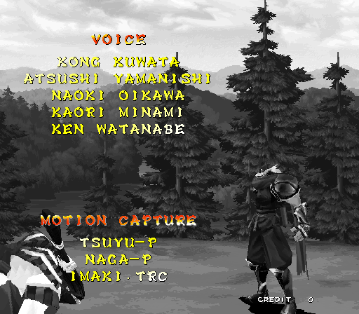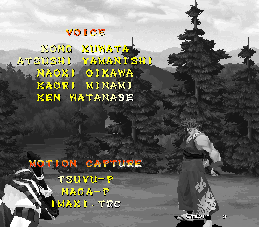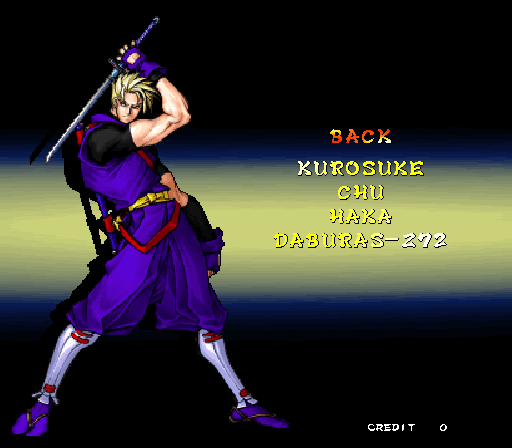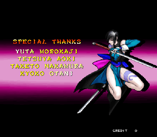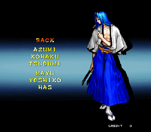 Galford Genjuro Kibagami Hanma Yagyu Hanzo Hattori Haohmaru Kazuki Kazama Nakoruru Rimururu Shiki Sogetsu Kazama Ukyo Tachibana