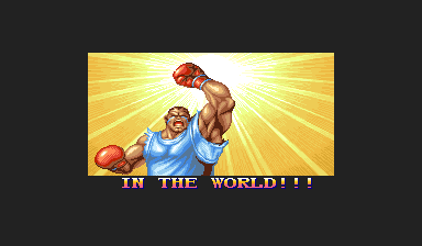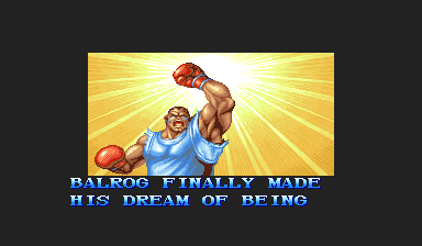 | Ryu | Ken | Chun Li | Guile | Blanka | Zangief | Dhalsim | E.Honda | | Cammy | Dee Jay | T.Hawk | Fei Long | - Balrog - | Vega | Sagat | M.Bison | |