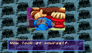 | Ryu | Cyclops | Ken | Rogue | Dhalsim | Chun Li | Storm | Zangief | Cammy | Charlie | | Gambit | Wolverine | Sabretooth | - Juggernaut - | Magneto | Akuma | M.Bison | |