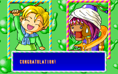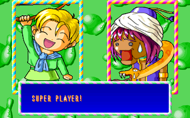 | Leadia | Erisia | Karen | Amless | Umeda | Syanon | | Miliss | Cowbell | Synauther | Dyena | - Millanda - | Aqua | | Puzzle Mode | - Vs. CPU Mode - | |