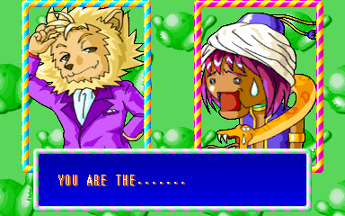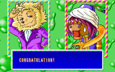 | Leadia | Erisia | Karen | Amless | Umeda | Syanon | | Miliss | Cowbell | - Synauther - | Dyena | Millanda | Aqua | | Puzzle Mode | - Vs. CPU Mode - | |