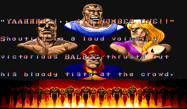 | Ryu | Ken | Zangief | Guile | Chun-Li | Dhalsim | | E.Honda | Blanka | - Balrog - | Vega | Sagat | M.Bison | |