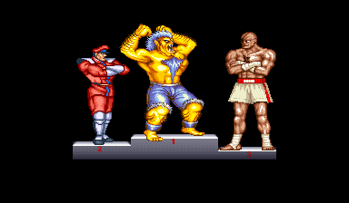 | Ryu | Ken | Chun Li | Guile | Zangief | Dhalsim | | - Blanka - | E.Honda | Balrog | Vega | Sagat | M.Bison | |