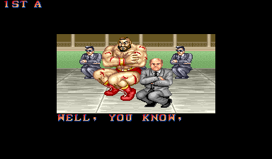 | Ryu | Ken | Chun Li | Guile | - Zangief - | Dhalsim | | Blanka | E.Honda | Balrog | Vega | Sagat | M.Bison | |