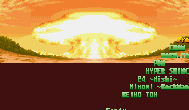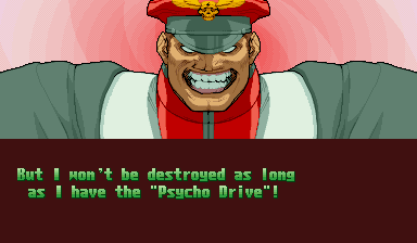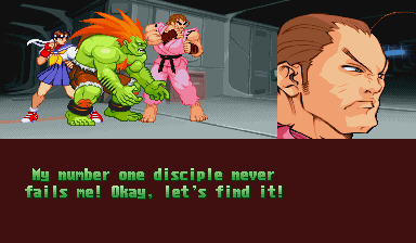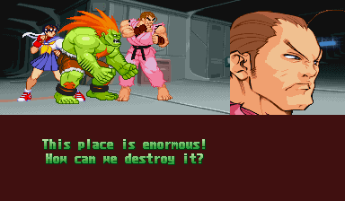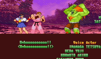 | - Good Endings - | Bad Ending | | Ryu | Ken | Charlie | Chun Li | Guy | Cody | - Blanka - | Dhalsim | E.Honda | Gen | Karin | R.Mika | Rolento | Rose | | Sakura | Sodom | Zangief | Dan | Cammy | Birdie | Adon | Vega | Sagat | Akuma | M.Bison | |