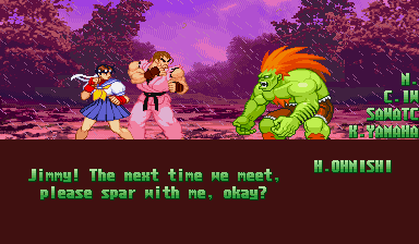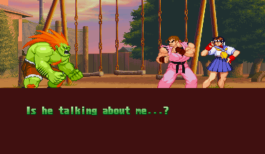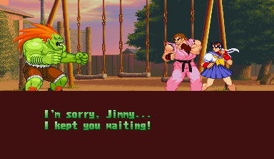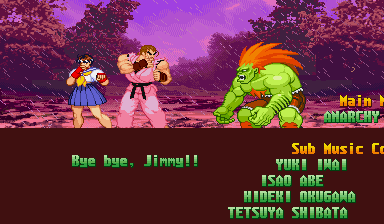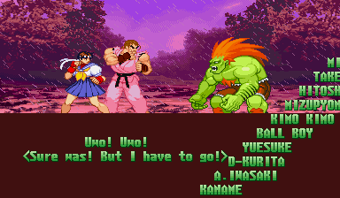 | Home | Tweet| - Good Endings - | Bad Ending | | Ryu | Ken | Charlie | Chun Li | Guy | Cody | - Blanka - | Dhalsim | E.Honda | Gen | Karin | R.Mika | Rolento | Rose | | Sakura | Sodom | Zangief | Dan | Cammy | Birdie | Adon | Vega | Sagat | Akuma | M.Bison |
