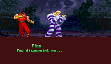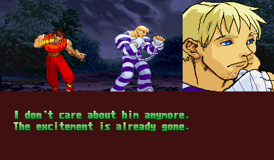 | Home | Tweet| - Good Endings - | Bad Ending | | Ryu | Ken | Charlie | Chun Li | Guy | - Cody - | Blanka | Dhalsim | E.Honda | Gen | Karin | R.Mika | Rolento | Rose | | Sakura | Sodom | Zangief | Dan | Cammy | Birdie | Adon | Vega | Sagat | Akuma | M.Bison |