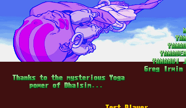 | Home | Tweet| - Good Endings - | Bad Ending | | Ryu | Ken | Charlie | Chun Li | Guy | Cody | Blanka | - Dhalsim - | E.Honda | Gen | Karin | R.Mika | Rolento | Rose | | Sakura | Sodom | Zangief | Dan | Cammy | Birdie | Adon | Vega | Sagat | Akuma | M.Bison |