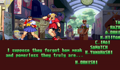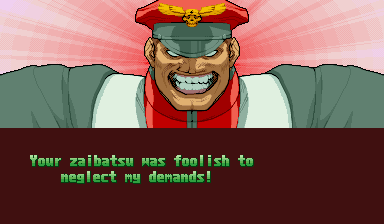 | Home | Tweet| - Good Endings - | Bad Ending | | Ryu | Ken | Charlie | Chun Li | Guy | Cody | Blanka | Dhalsim | E.Honda | Gen | - Karin - | R.Mika | Rolento | Rose | | Sakura | Sodom | Zangief | Dan | Cammy | Birdie | Adon | Vega | Sagat | Akuma | M.Bison |