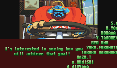 | - Good Endings - | Bad Ending | | Ryu | Ken | Charlie | Chun Li | Guy | Cody | Blanka | Dhalsim | E.Honda | Gen | Karin | R.Mika | - Rolento - | Rose | | Sakura | Sodom | Zangief | Dan | Cammy | Birdie | Adon | Vega | Sagat | Akuma | M.Bison | |
