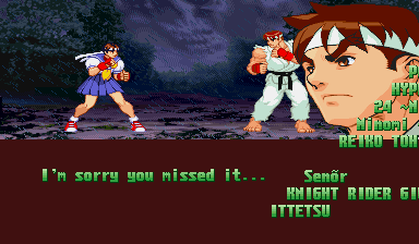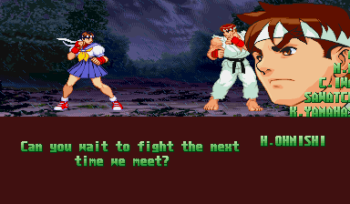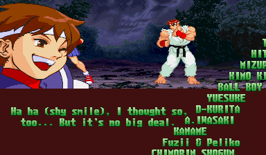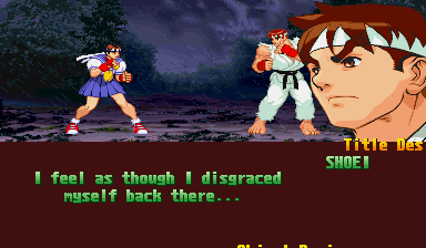 | Home | Tweet| - Good Endings - | Bad Ending | | Ryu | Ken | Charlie | Chun Li | Guy | Cody | Blanka | Dhalsim | E.Honda | Gen | Karin | R.Mika | Rolento | Rose | | - Sakura - | Sodom | Zangief | Dan | Cammy | Birdie | Adon | Vega | Sagat | Akuma | M.Bison |