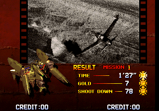 | Spitfire | Lightning | Flying Pancake | Fiat G-56 | | Zero Fighter | Ta152 Focke-Wulf | - Ascender - | | - 1 Player - | 2 Players | | - 1st Run - | 2nd Run | |