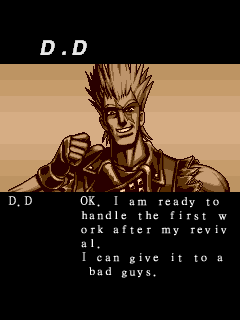 | - D.D - | Shorty | Jyuji | Maria | Golden | Strawman | Birthday | Gain | Chitta | Miyamoto | Bornnam | Car-Pet | Tag-T | Adam | | B.Wayne (Silver Sword) | B.Wayne (Flying Baron) | J.Wayne (Grasshopper) | J.Wayne (Wild Snail) | | Team Play | - Solo Play - | | - Advanced - | Special | Normal | Training | |