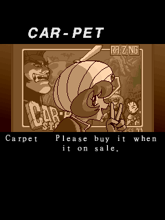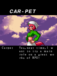 | D.D | Shorty | Jyuji | Maria | Golden | Strawman | Birthday | Gain | Chitta | Miyamoto | Bornnam | - Car-Pet - | Tag-T | Adam | | B.Wayne (Silver Sword) | B.Wayne (Flying Baron) | J.Wayne (Grasshopper) | J.Wayne (Wild Snail) | | Team Play | - Solo Play - | | - Advanced - | Special | Normal | Training | |