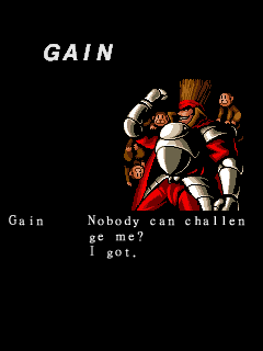 | D.D | Shorty | Jyuji | Maria | Golden | Strawman | Birthday | - Gain - | Chitta | Miyamoto | Bornnam | Car-Pet | Tag-T | Adam | | B.Wayne (Silver Sword) | B.Wayne (Flying Baron) | J.Wayne (Grasshopper) | J.Wayne (Wild Snail) | | Team Play | - Solo Play - | | - Advanced - | Special | Normal | Training | |