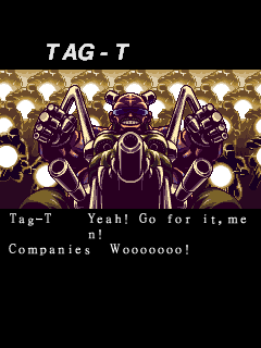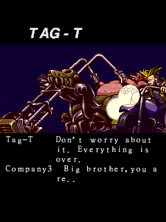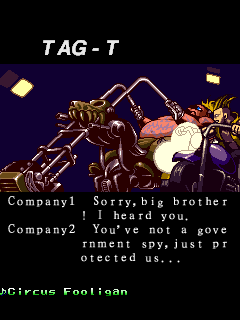 | D.D | Shorty | Jyuji | Maria | Golden | Strawman | Birthday | Gain | Chitta | Miyamoto | Bornnam | Car-Pet | - Tag-T - | Adam | | B.Wayne (Silver Sword) | B.Wayne (Flying Baron) | J.Wayne (Grasshopper) | J.Wayne (Wild Snail) | | Team Play | - Solo Play - | | - Advanced - | Special | Normal | Training | |