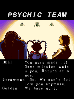 | Police Team: D.D, Shorty, Jyuji | - Psychic Team: Maria, Golden, Strawman - | Criminal Team: Birthday, Tag-T, Adam | | - Team Play - | Solo Play | | - Advanced - | Special | Normal | Training | |