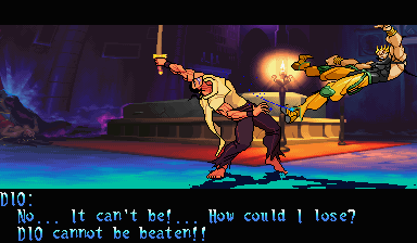 | Jotaro | Polnareff | Joseph | Kakyoin | Iggi | Midler | Alessy | | D'Bo | Avdol | - Chaca - | Dio | Young Joseph | Shadow Dio | |