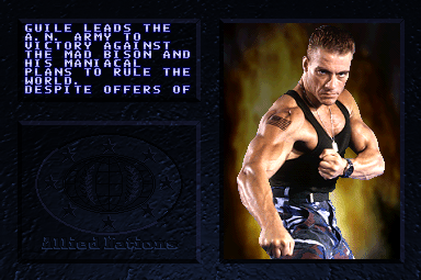 | Ryu | Ken | - Guile - | Chun-Li | E.Honda | Zangief | Cammy | Sawada | | Blade | Arkane | Kyber | Balrog | Vega | Sagat | Akuma | Bison | |