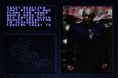 | Ryu | Ken | Guile | Chun-Li | E.Honda | Zangief | Cammy | Sawada | | Blade | Arkane | Kyber | Balrog | Vega | - Sagat - | Akuma | Bison | |