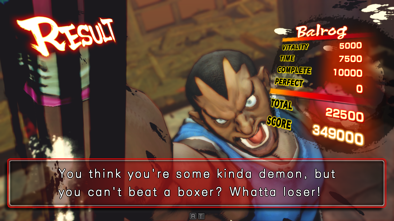 | Home | BackTweet | Ryu | Ken | E.Honda | Ibuki | Makoto | Dudley | Seth | Gouken | Akuma | Gen | Dan | Sakura | Yun | Juri | Chun-Li | Dhalsim | Abel | C.Viper | M.Bison | Sagat | | Cammy | Dee Jay | Cody | Guy | Hakan | Yang | Guile | Blanka | Zangief | Rufus | El Fuerte | Vega | - Balrog - | Fei Long | T.Hawk | Adon | Rose | Evil Ryu | Oni | If Seth Was The Last Boss If Akuma Was The Last Boss If Gouken Was The Last Boss If Evil Ryu Was The Last Boss If Oni Was The Last Boss