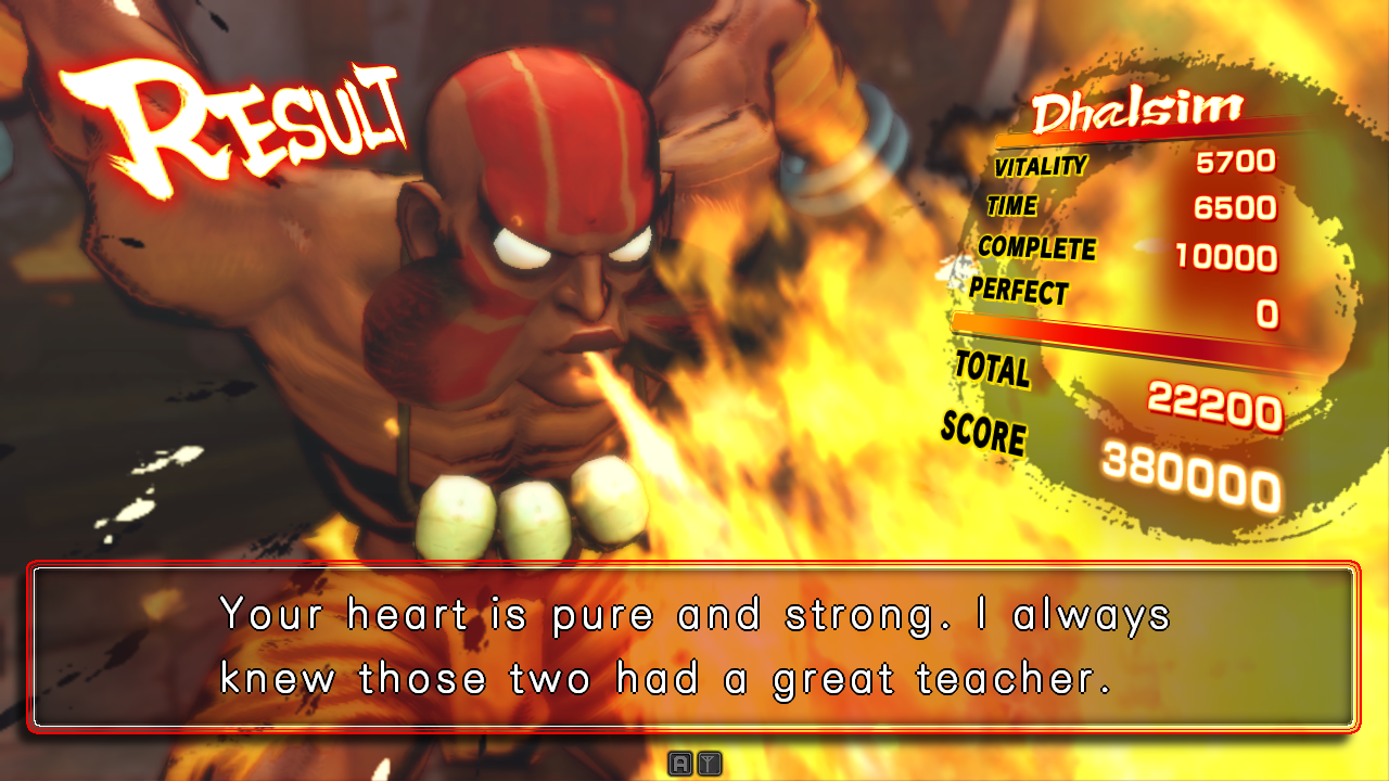 | Ryu | Ken | E.Honda | Ibuki | Makoto | Dudley | Seth | Gouken | Akuma | Gen | Dan | Sakura | Yun | Juri | Chun-Li | - Dhalsim - | Abel | C.Viper | M.Bison | Sagat | | Cammy | Dee Jay | Cody | Guy | Hakan | Yang | Guile | Blanka | Zangief | Rufus | El Fuerte | Vega | Balrog | Fei Long | T.Hawk | Adon | Rose | Evil Ryu | Oni | |
