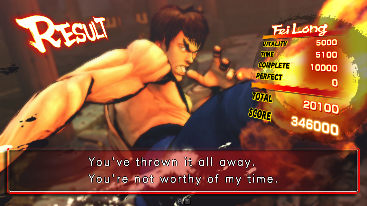 | Home | BackTweet | Ryu | Ken | E.Honda | Ibuki | Makoto | Dudley | Seth | Gouken | Akuma | Gen | Dan | Sakura | Yun | Juri | Chun-Li | Dhalsim | Abel | C.Viper | M.Bison | Sagat | | Cammy | Dee Jay | Cody | Guy | Hakan | Yang | Guile | Blanka | Zangief | Rufus | El Fuerte | Vega | Balrog | - Fei Long - | T.Hawk | Adon | Rose | Evil Ryu | Oni | If Seth Was The Last Boss If Akuma Was The Last Boss If Gouken Was The Last Boss If Evil Ryu Was The Last Boss If Oni Was The Last Boss