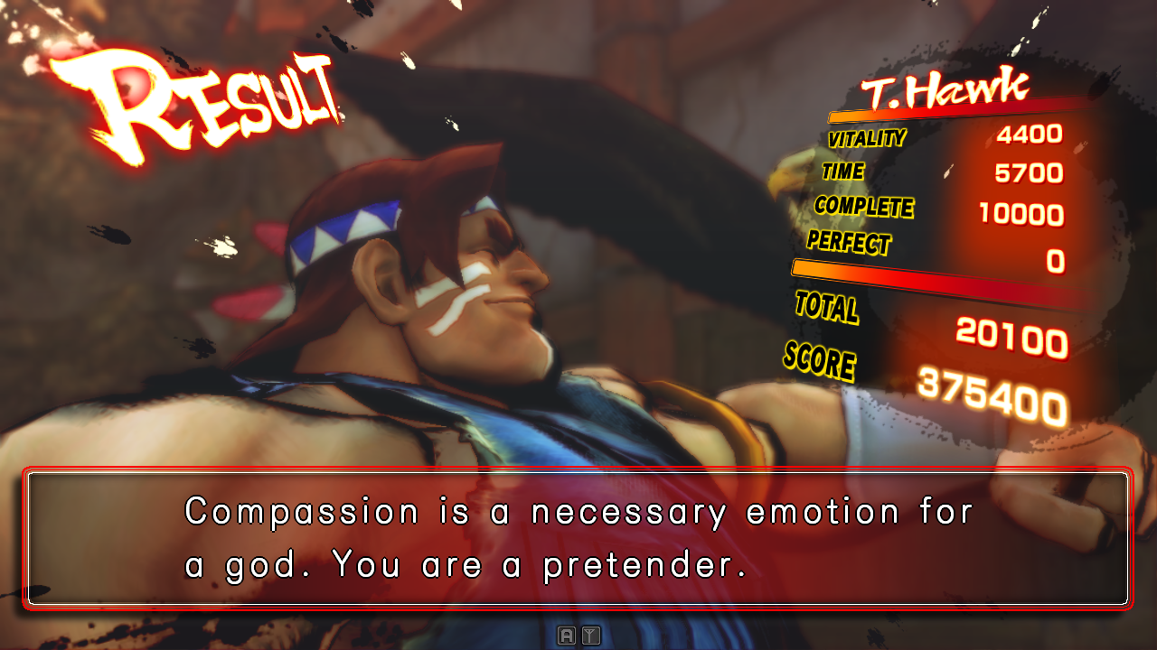 | Home | BackTweet | Ryu | Ken | E.Honda | Ibuki | Makoto | Dudley | Seth | Gouken | Akuma | Gen | Dan | Sakura | Yun | Juri | Chun-Li | Dhalsim | Abel | C.Viper | M.Bison | Sagat | | Cammy | Dee Jay | Cody | Guy | Hakan | Yang | Guile | Blanka | Zangief | Rufus | El Fuerte | Vega | Balrog | Fei Long | - T.Hawk - | Adon | Rose | Evil Ryu | Oni | If Seth Was The Last Boss If Akuma Was The Last Boss If Gouken Was The Last Boss If Evil Ryu Was The Last Boss If Oni Was The Last Boss