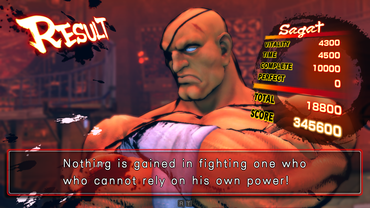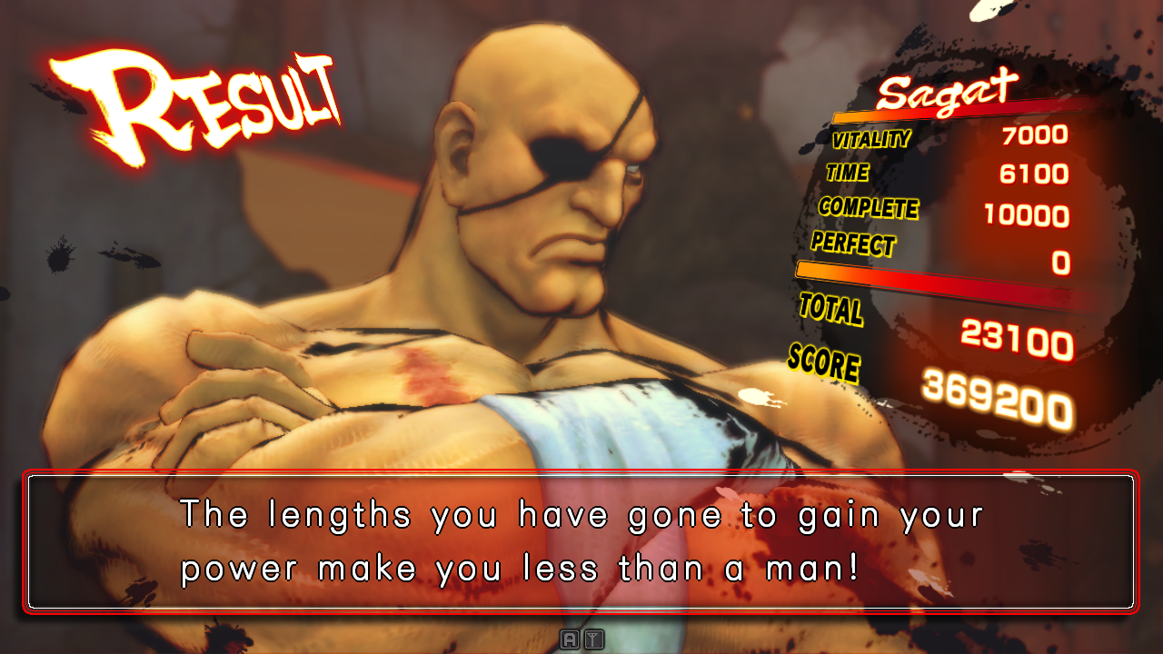 | Home | BackTweet | Ryu | Ken | E.Honda | Ibuki | Makoto | Dudley | Seth | Gouken | Akuma | Gen | Dan | Sakura | Yun | Juri | Chun-Li | Dhalsim | Abel | C.Viper | M.Bison | - Sagat - | | Cammy | Dee Jay | Cody | Guy | Hakan | Yang | Guile | Blanka | Zangief | Rufus | El Fuerte | Vega | Balrog | Fei Long | T.Hawk | Adon | Rose | Evil Ryu | Oni | If Seth Was The Last Boss If Akuma Was The Last Boss If Gouken Was The Last Boss If Evil Ryu Was The Last Boss If Oni Was The Last Boss