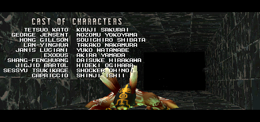 | Janis | Allen | Blair | Exodus | Knight | Hong | George | Eagle | Jigjid | Lan | | - Capriccio - | Ajax | Shark | Joe | Sessyu | Tetsuo | Clemence | Shang | Tiger | Vold | |