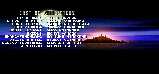 | Janis | Allen | Blair | Exodus | Knight | Hong | George | Eagle | Jigjid | Lan | | Capriccio | Ajax | Shark | Joe | Sessyu | Tetsuo | - Clemence - | Shang | Tiger | Vold | |