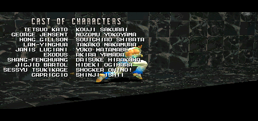 | Janis | Allen | Blair | Exodus | Knight | Hong | George | Eagle | Jigjid | Lan | | Capriccio | Ajax | Shark | Joe | Sessyu | - Tetsuo - | Clemence | Shang | Tiger | Vold | |