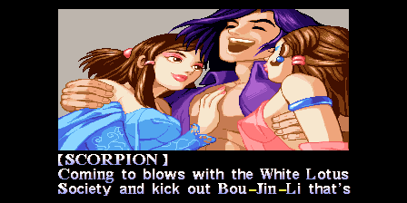 | Master Huang | Crane | Monk | Drunk Master | Red Snake | Ghost Kick | | - Scorpion - | Monkey Boy | Reika | Tiger | Saojin | Lotus Master | |