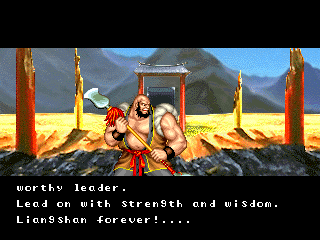 | Shi Jin | Lin Chong | Hu San Niang | - Lu Zhi Shen - | Dai Zong | Li Kui | | Gong Shun Sheng | Wu Song | Ruan Xiao Er | Ruan Xiao Qi | Ruan Xiao Wu | |