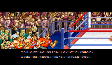 | Biff | Grater | - Gunloc - | Haggar | Oni | Rasta | Stingr | Titan | | 1st Run | - 2nd Run - | | - Single Match - | Team Battle Royal | |