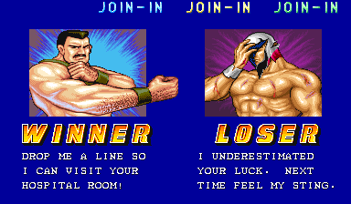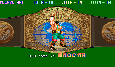 | Biff | Grater | Gunloc | - Haggar - | Oni | Rasta | Stingr | Titan | | - 1st Run - | 2nd Run | | - Single Match - | Team Battle Royal | |