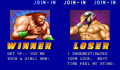 | Biff | Grater | Gunloc | Haggar | Oni | - Rasta - | Stingr | Titan | | - 1st Run - | 2nd Run | | - Single Match - | Team Battle Royal | |