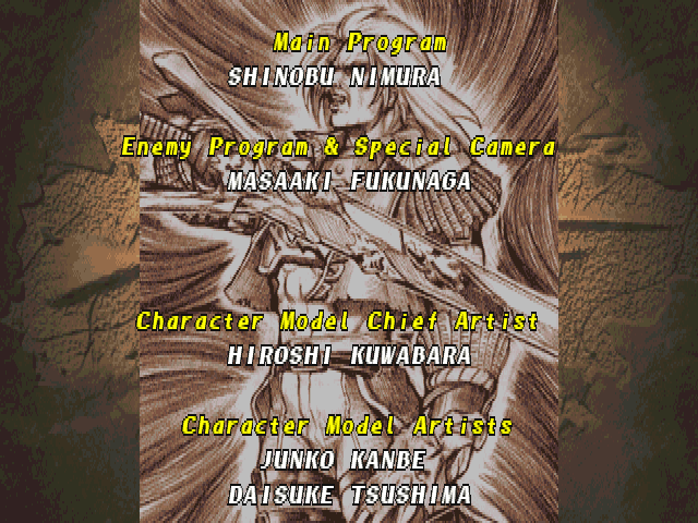| Mitsurugi | Rock | Taki | Sophitia | Hwang | | Siegfried | Seung Mina | Li Long | Voldo | - Cervantes - | |