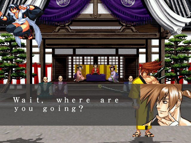 | Andrew | Amakusa | Basara | Cham Cham | Charlotte | Earthquake | Enja | Gaira | Galford | Gaoh | Gen-An | Genjuro | Hanzo | Haohmaru | - Iroha - | Jubei | Kazuki | Kusaregedo | Kyoshiro | Mina | | Mizuki | Nakoruru | Nicotine | Ocha-Maro | Rasetsumaru | Rera | Rimururu | Sankuro | Shizumaru | Sieger | Sogetsu | Sugoroku | Suija | Tam Tam | Ukyo | Wan-Fu | Yoshitora | Yumeji | Yunfei | Zankuro | |