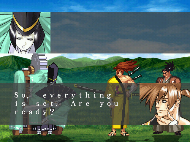 | Andrew | Amakusa | Basara | Cham Cham | Charlotte | Earthquake | Enja | Gaira | Galford | Gaoh | Gen-An | Genjuro | Hanzo | Haohmaru | Iroha | Jubei | Kazuki | Kusaregedo | Kyoshiro | Mina | | Mizuki | Nakoruru | Nicotine | - Ocha-Maro - | Rasetsumaru | Rera | Rimururu | Sankuro | Shizumaru | Sieger | Sogetsu | Sugoroku | Suija | Tam Tam | Ukyo | Wan-Fu | Yoshitora | Yumeji | Yunfei | Zankuro | |
