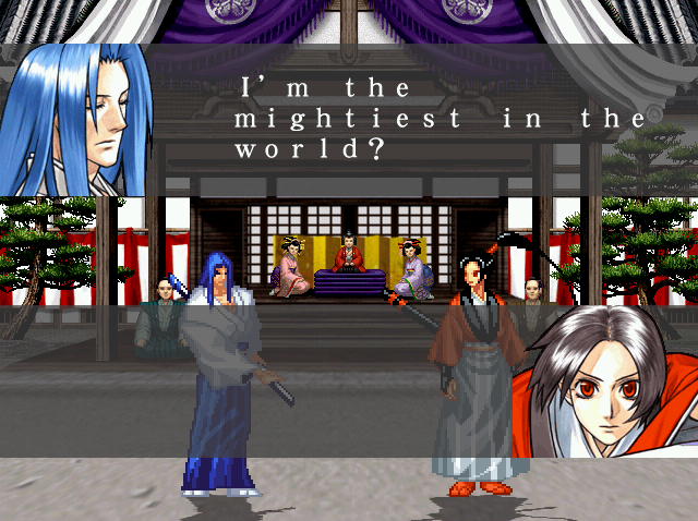 | Andrew | Amakusa | Basara | Cham Cham | Charlotte | Earthquake | Enja | Gaira | Galford | Gaoh | Gen-An | Genjuro | Hanzo | Haohmaru | Iroha | Jubei | Kazuki | Kusaregedo | Kyoshiro | Mina | | Mizuki | Nakoruru | Nicotine | Ocha-Maro | Rasetsumaru | Rera | Rimururu | Sankuro | Shizumaru | Sieger | Sogetsu | Sugoroku | Suija | Tam Tam | - Ukyo - | Wan-Fu | Yoshitora | Yumeji | Yunfei | Zankuro | |