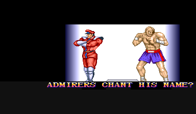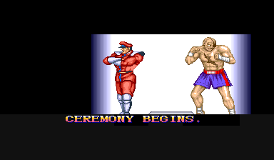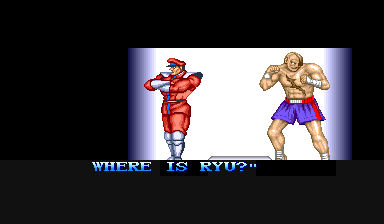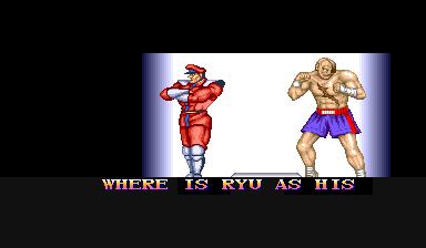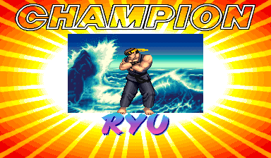 | Balrog | Blanka | Cammy | Chun-Li | Dee Jay | Dhalsim | E.Honda | Fei Long | Guile | Ken | M.Bison | - Ryu - | Sagat | T.Hawk | Vega | Zangief | Akuma | |