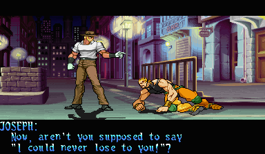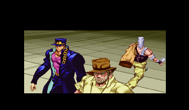 | - Joseph - | Jotaro | Avdol | Iggi | Mahrahia | Chaca | Petshop | Black Polnareff | Holhorse | Midler | Kakyoin | Dio | | Iced | D'Bo | Alessy | Polnareff | Jojo | Robber Soul | Holhorse & Voing | New Kakyoin | Kan | Shadow Dio | |