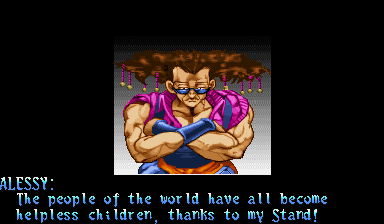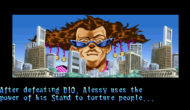 | Joseph | Jotaro | Avdol | Iggi | Mahrahia | Chaca | Petshop | Black Polnareff | Holhorse | Midler | Kakyoin | Dio | | Iced | D'Bo | - Alessy - | Polnareff | Jojo | Robber Soul | Holhorse & Voing | New Kakyoin | Kan | Shadow Dio | |