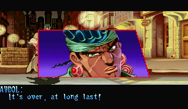 | Joseph | Jotaro | - Avdol - | Iggi | Mahrahia | Chaca | Petshop | Black Polnareff | Holhorse | Midler | Kakyoin | Dio | | Iced | D'Bo | Alessy | Polnareff | Jojo | Robber Soul | Holhorse & Voing | New Kakyoin | Kan | Shadow Dio | |