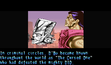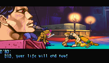 | Joseph | Jotaro | Avdol | Iggi | Mahrahia | Chaca | Petshop | Black Polnareff | Holhorse | Midler | Kakyoin | Dio | | Iced | - D'Bo - | Alessy | Polnareff | Jojo | Robber Soul | Holhorse & Voing | New Kakyoin | Kan | Shadow Dio | |