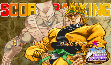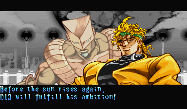 | Joseph | Jotaro | Avdol | Iggi | Mahrahia | Chaca | Petshop | Black Polnareff | Holhorse | Midler | Kakyoin | - Dio - | | Iced | D'Bo | Alessy | Polnareff | Jojo | Robber Soul | Holhorse & Voing | New Kakyoin | Kan | Shadow Dio | |