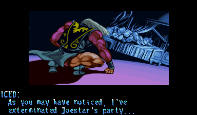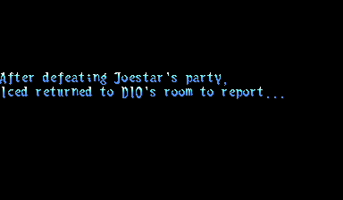 | Joseph | Jotaro | Avdol | Iggi | Mahrahia | Chaca | Petshop | Black Polnareff | Holhorse | Midler | Kakyoin | Dio | | - Iced - | D'Bo | Alessy | Polnareff | Jojo | Robber Soul | Holhorse & Voing | New Kakyoin | Kan | Shadow Dio | |
